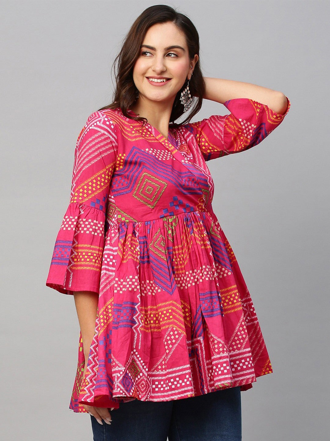 Bandhani Printed V-Neck Pure Cotton Angrakha Anarkali Short Kurti